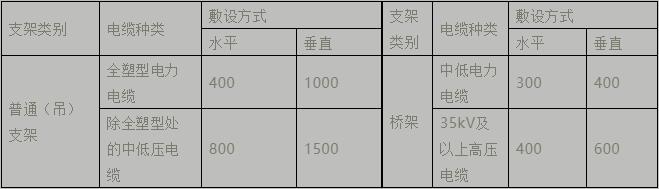 (4)支架層間允許最小距離,當(dāng)設(shè)計無要求時,可采用下表的規(guī)定。但層間凈距不應(yīng)小于電纜外徑的2倍加10mm。