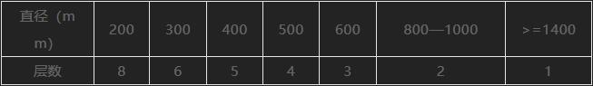 管道存放時(shí)采用臥式堆放,并固定牢靠。存放層數(shù)見(jiàn)下表。